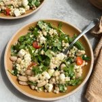 Pesto pearl couscous salad with cannellini beans is a delicious and flavorful dish to serve with your favorite protein and sides!