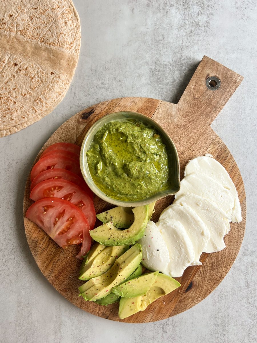 What you’ll need to make pesto pistachio mozzarella wraps