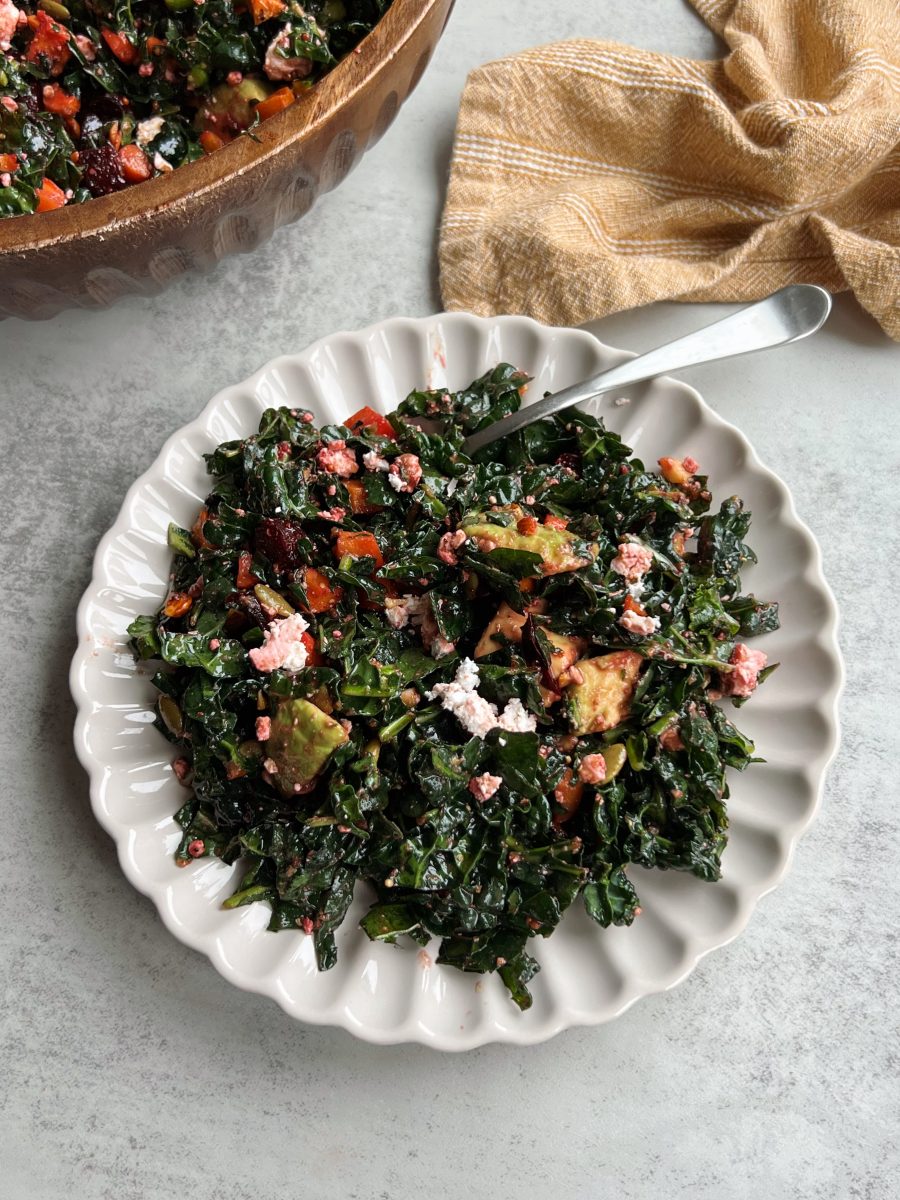 This kale salad is simple to make and has the best combination of flavors. I can’t wait for you guys to try it!