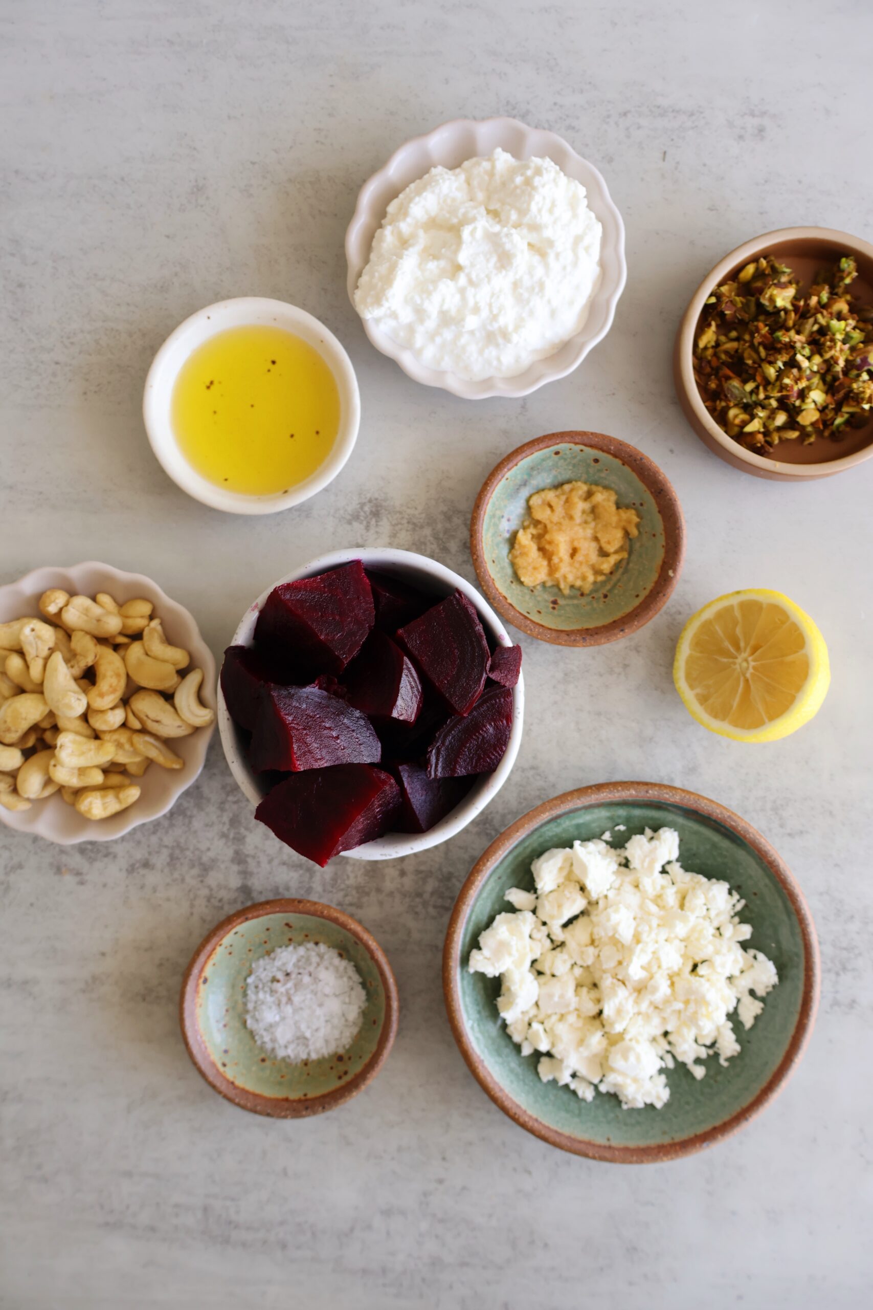 - Once the beets are ready, add them to a blender with 1/2 cup pasta water, the cashews, ricotta, 1/2 tsp salt, lemon juice, 1 tsp of olive oil and garlic. Blend until smooth. Taste and adjust salt if needed. Add more water as needed to thin out the sauce.
