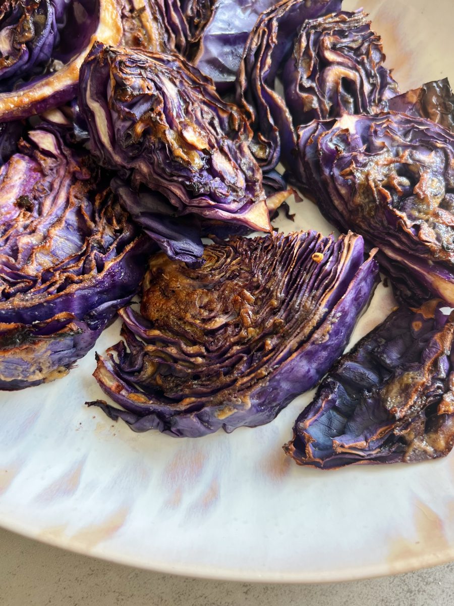 This roasted cabbage is crisp, flavorful, and honestly so addicting. It’s one of those dishes thats best eaten fresh, and can even be made to snack on throughout the day. It goes well with just about any main course, too!