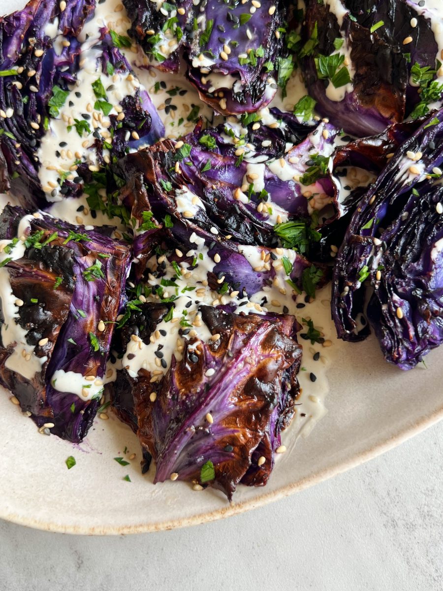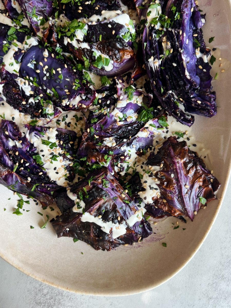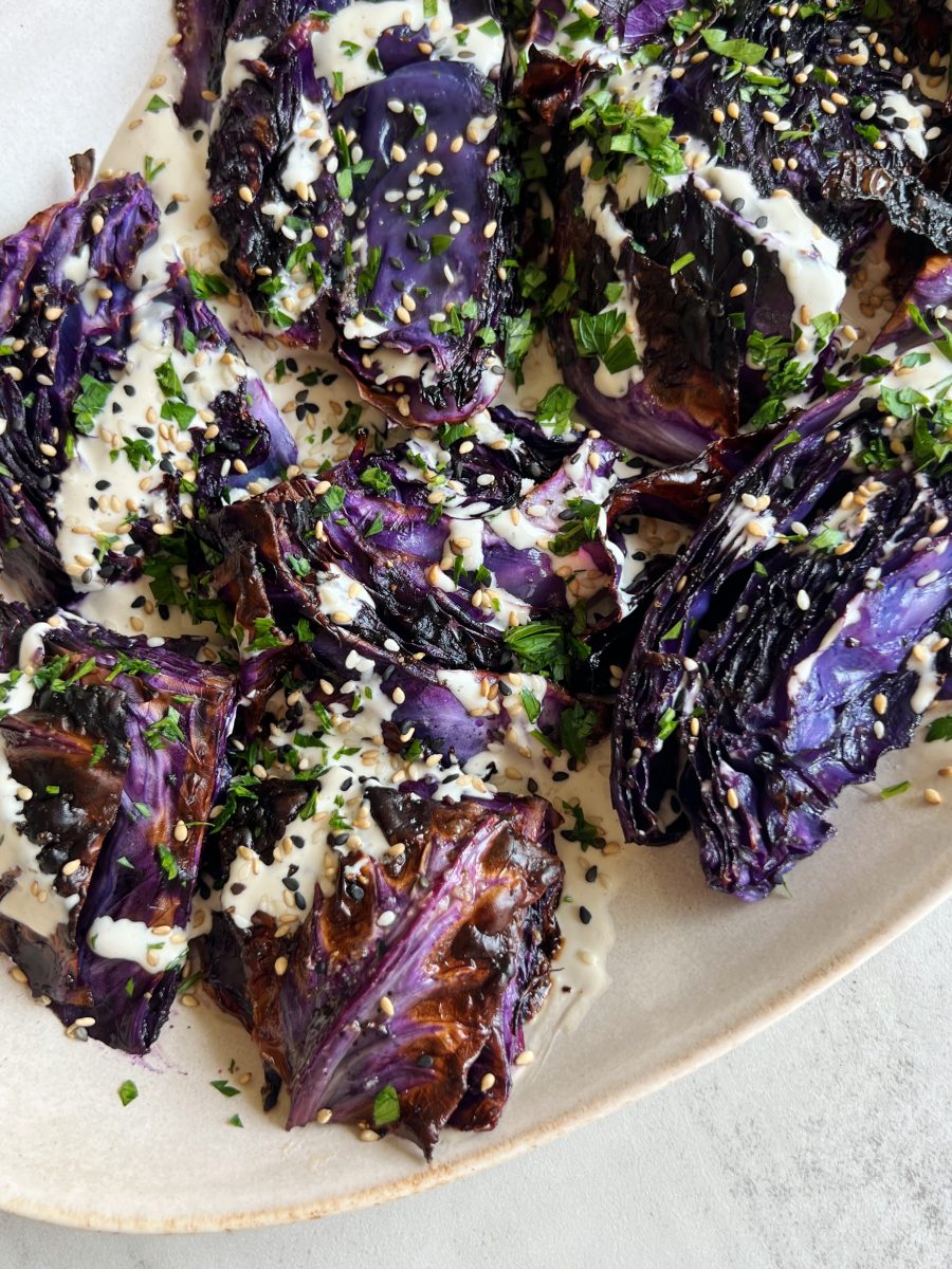 Crisp roasted cabbage with tahini yogurt sauce makes for the most flavorful side dish to any meal.