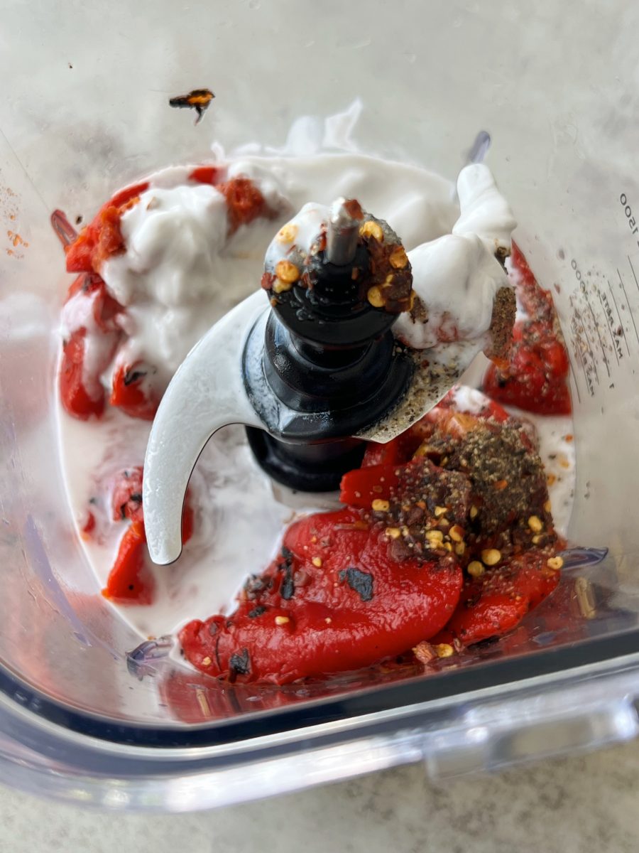 I prefer using store-bought roasted red peppers to save time, but you can easily make your own if preferred.