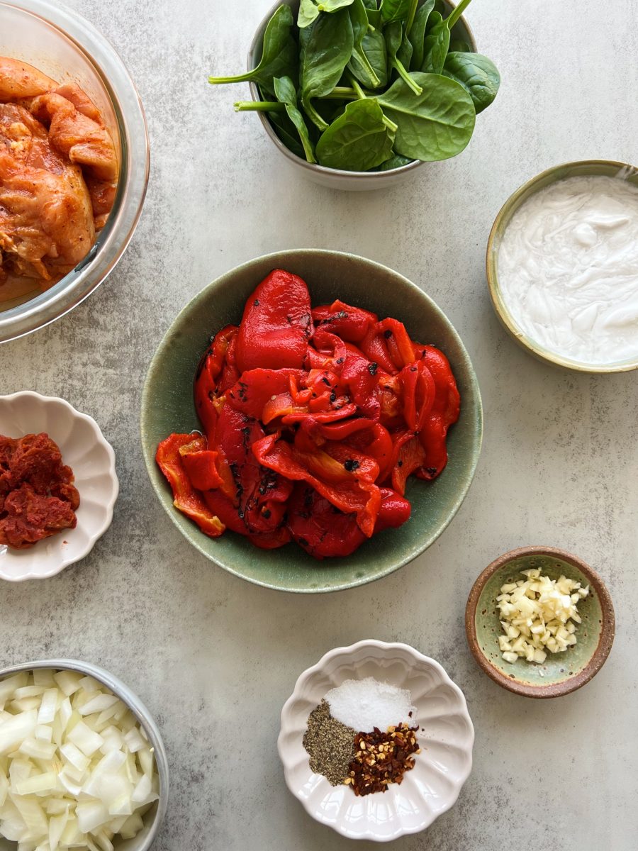- Store-bought roasted red peppers, or homemade if you’re feeling fancy