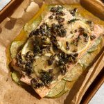 I layered thinly sliced zucchini underneath my fish, but you can add other vegetables like asparagus, tomatoes and even onion.