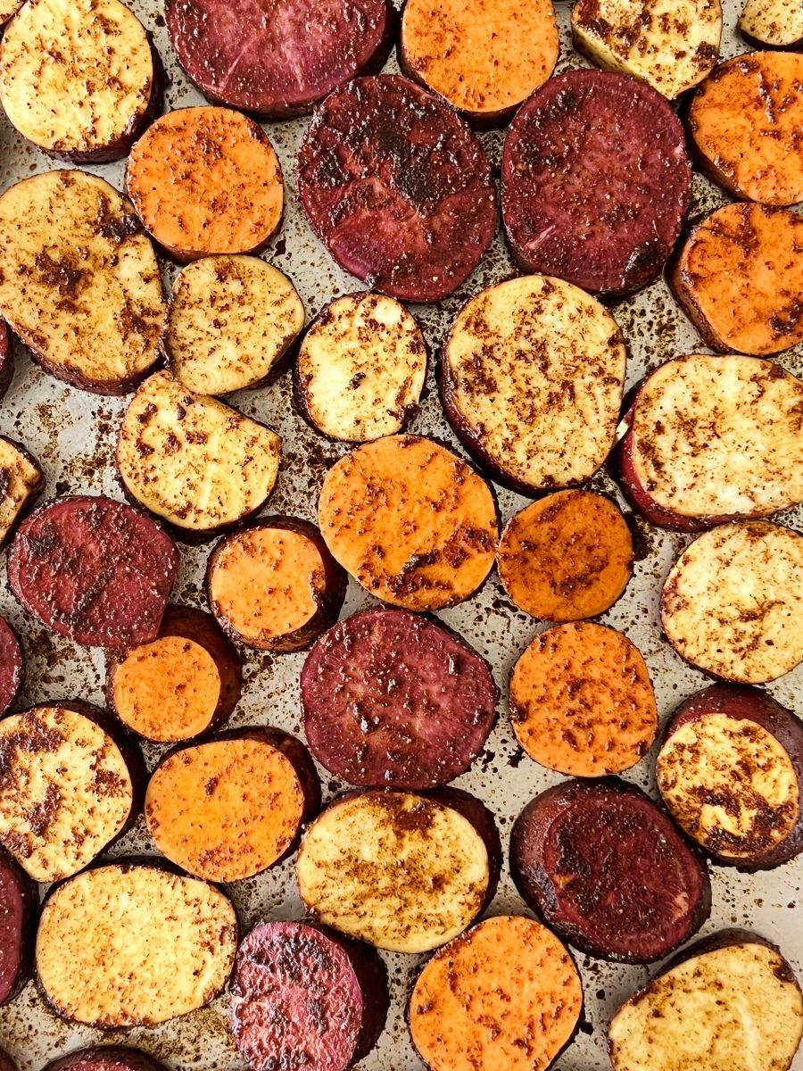 - Sweet potatoes– I used orange, purple and white Japanese sweet potatoes for a fun color combination