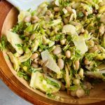This shaved brussels sprouts salad is filled with crunchy nuts and seeds, shaved cheese, and sweet apple slices. It’s delicious on its own, or served with your favorite main course!