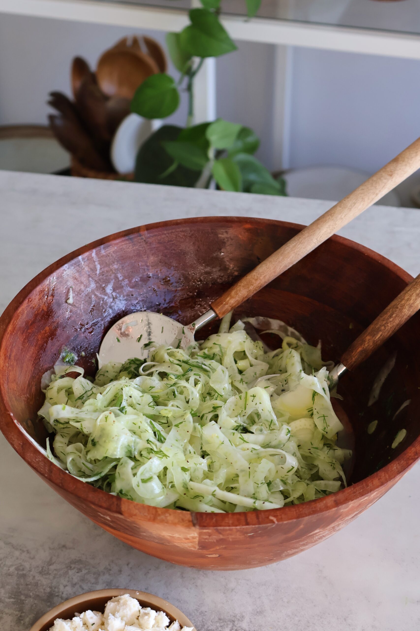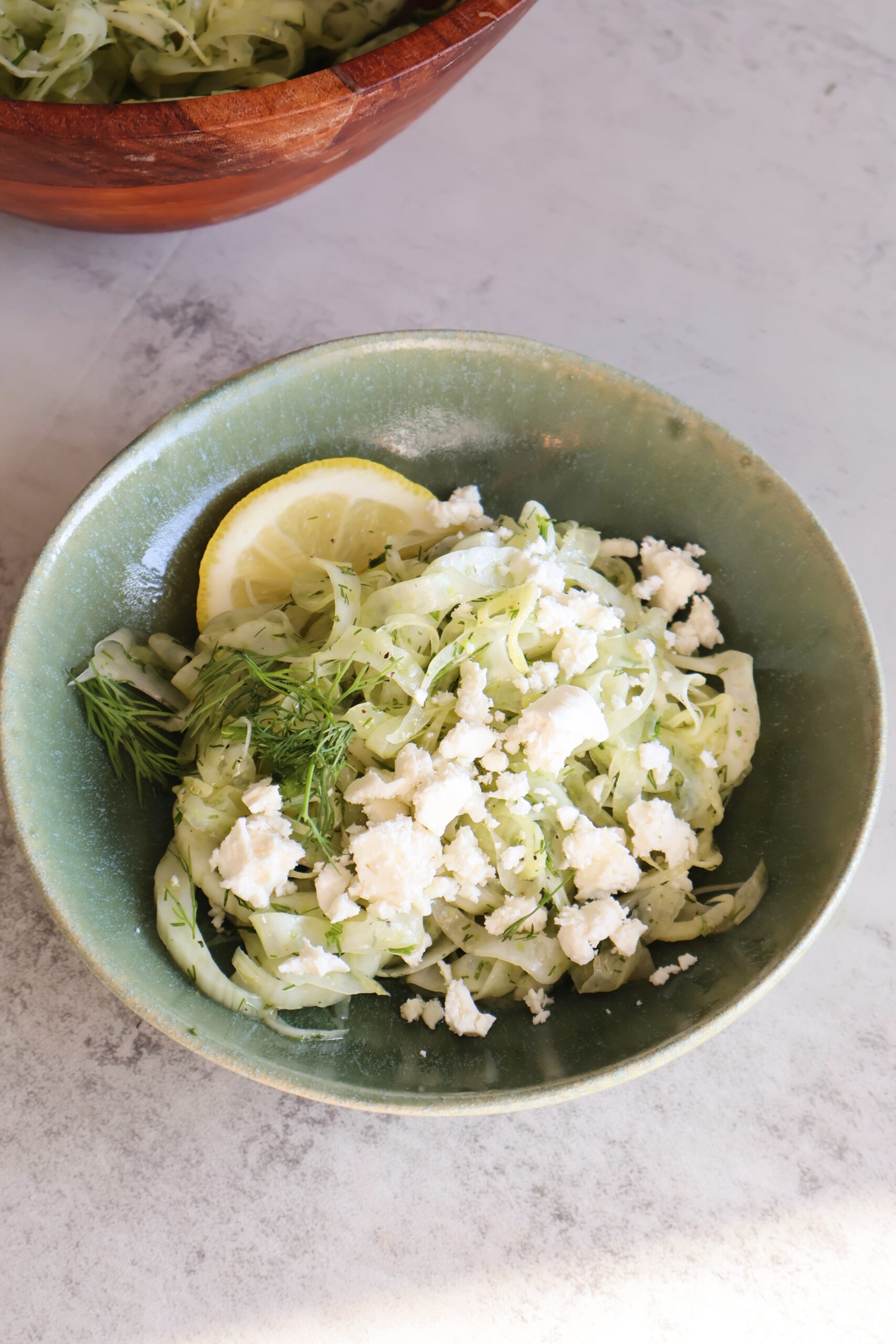 If you’ve never tried fennel before, it has a slight licorice taste with the most refreshing texture. Thinly shaving it using a mandoline is my favorite way to prepare it for a salad, especially when paired with fresh dill, lemon juice and extra virgin olive oil.