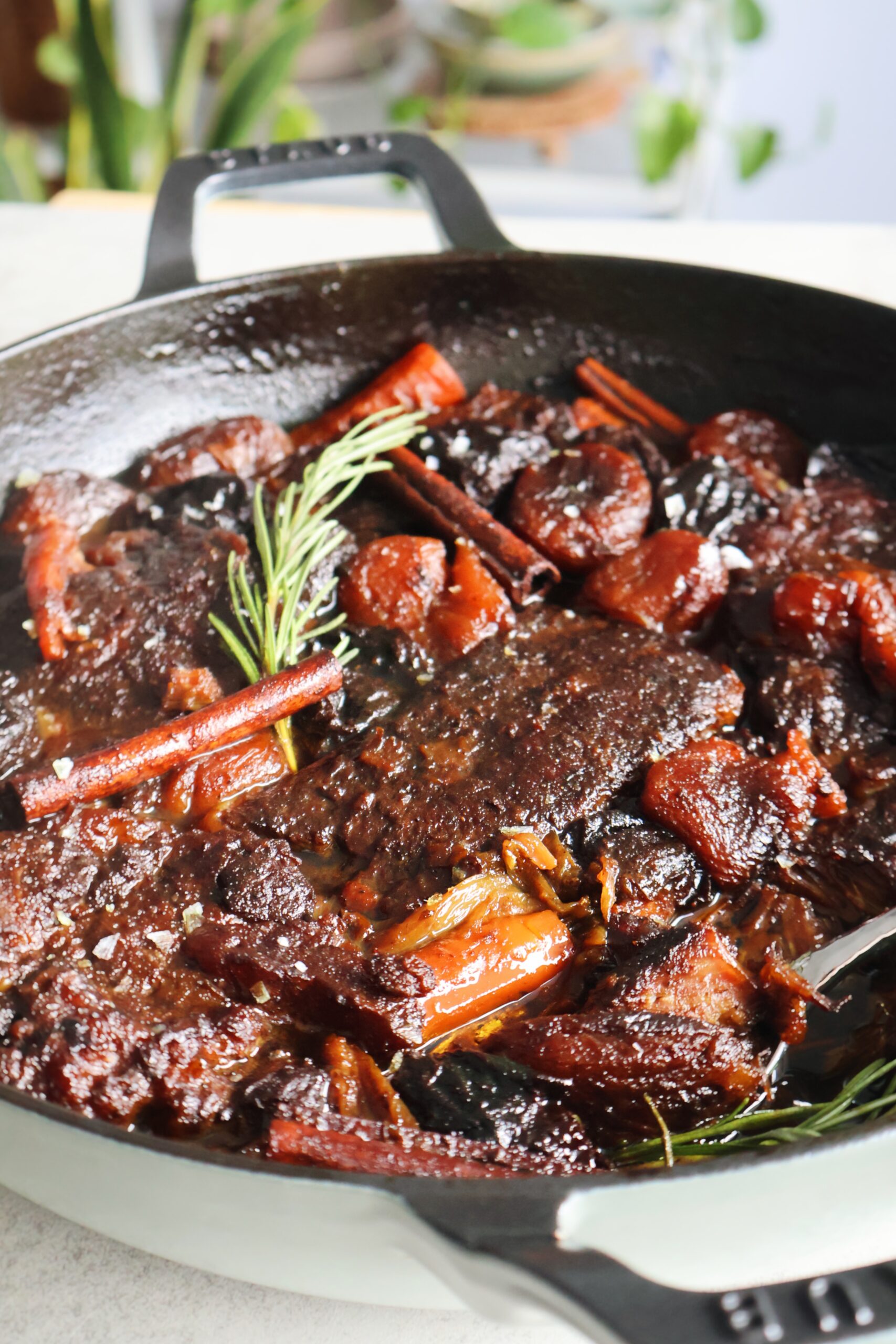 As always, my braiser pan is my go-to baking dish for these types of recipes. It’s the perfect pan to serve in straight out of the oven, and makes this recipe that much simpler to make.