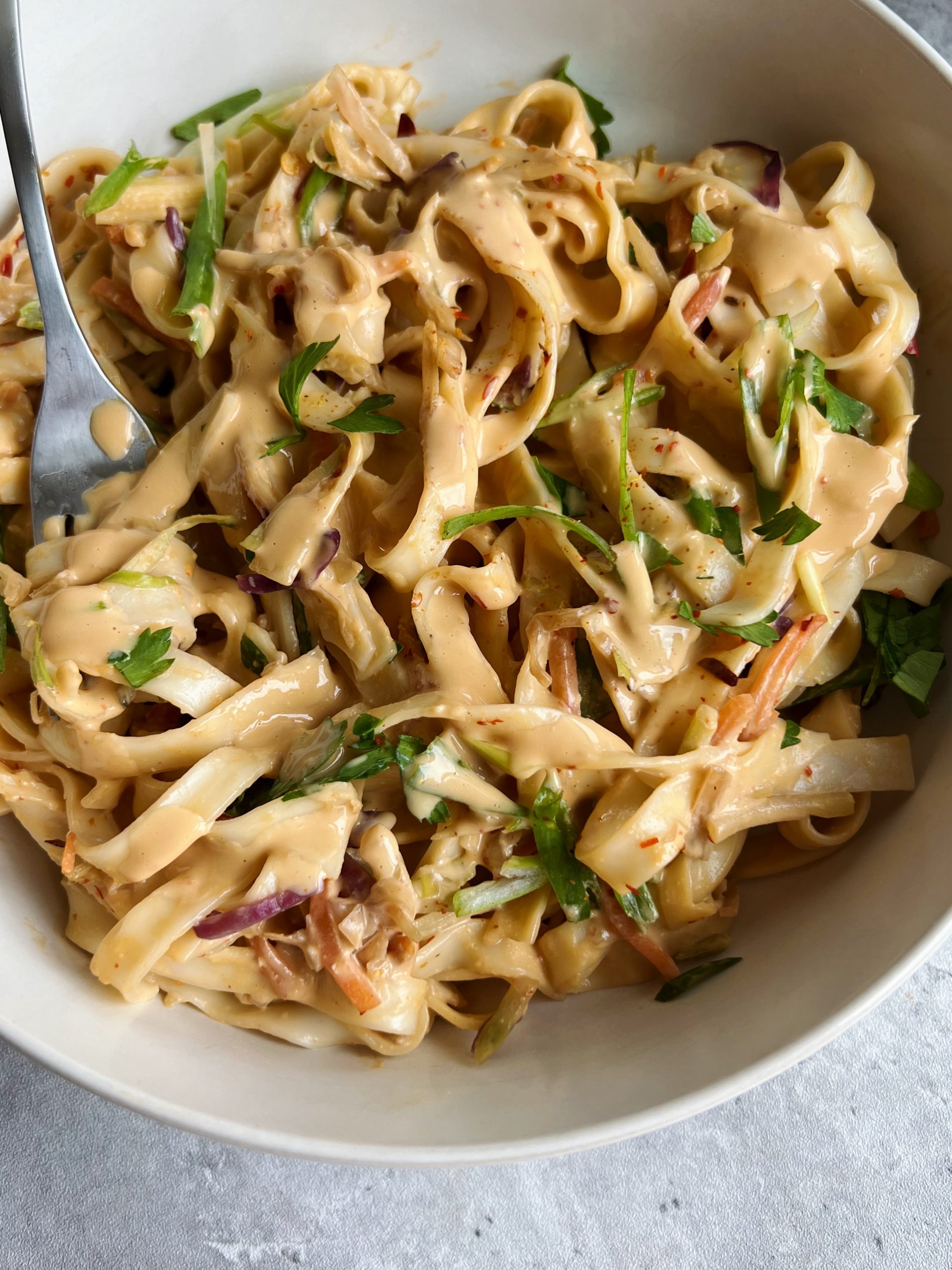 Tahini is one of my pantry staples that I use in so many of my recipes. It makes for the perfect creamy sauce for noodles, and adds a delicious boost of fat and protein.