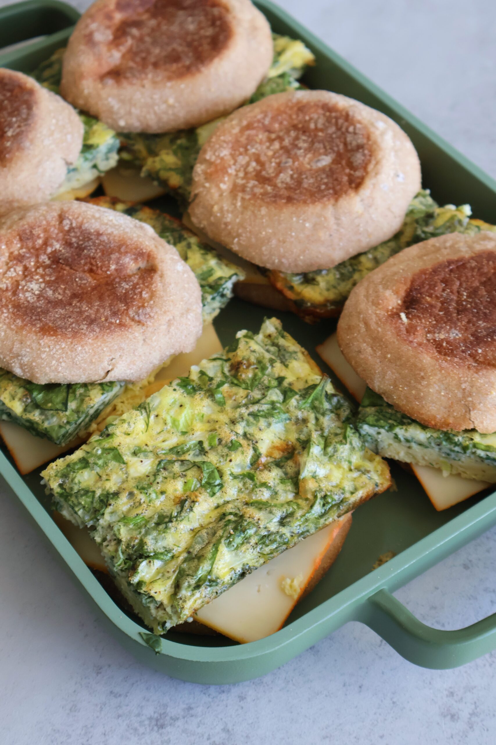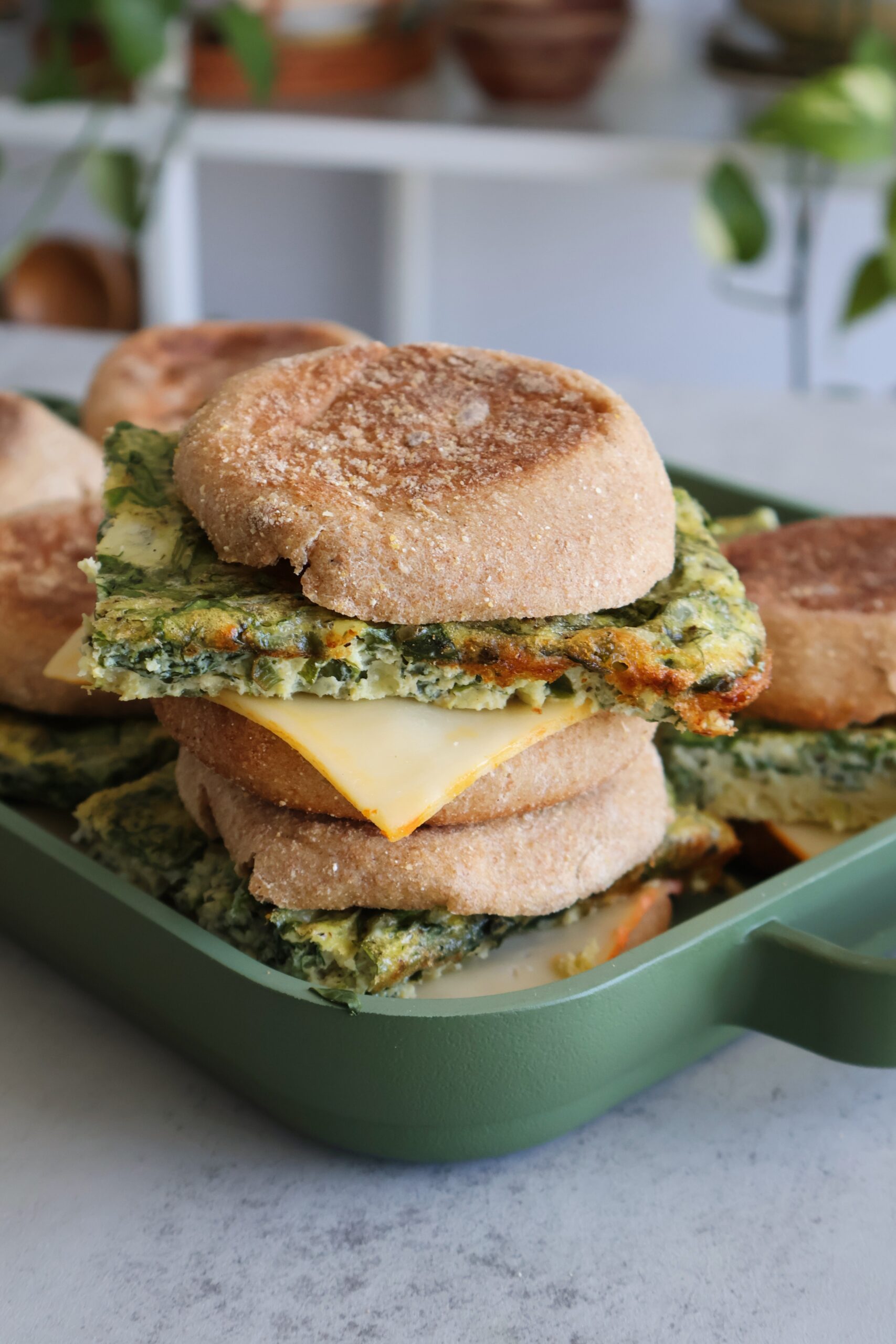 These breakfast sandwiches come together so easily, and are a great way to fuel your morning with protein, veggies and fiber. They come together in just 30 minutes, and can be stored in the fridge for up to 4 days, or freezer for up to 2 months.