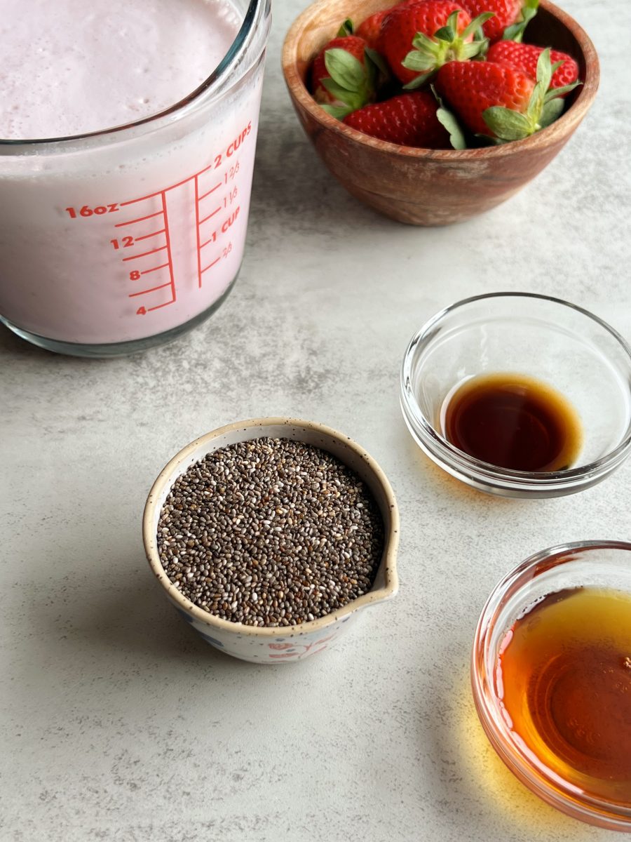 - Maple syrup– I like to sweeten my chia pudding with maple syrup, but honey or any other sweetener you prefer would work well