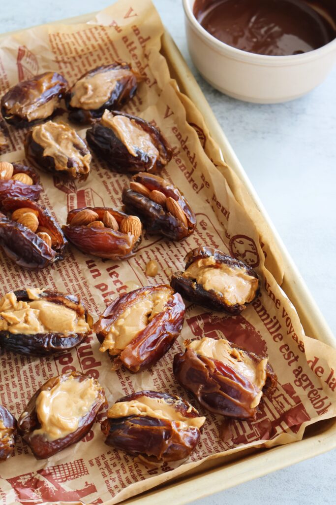 Stuffed Dates with Peanut Butter, Almonds and Chocolate