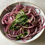 These onions are a staple in Turkish cuisine, traditionally served with meat, but delicious on salmon bowls or savory breakfast plates.