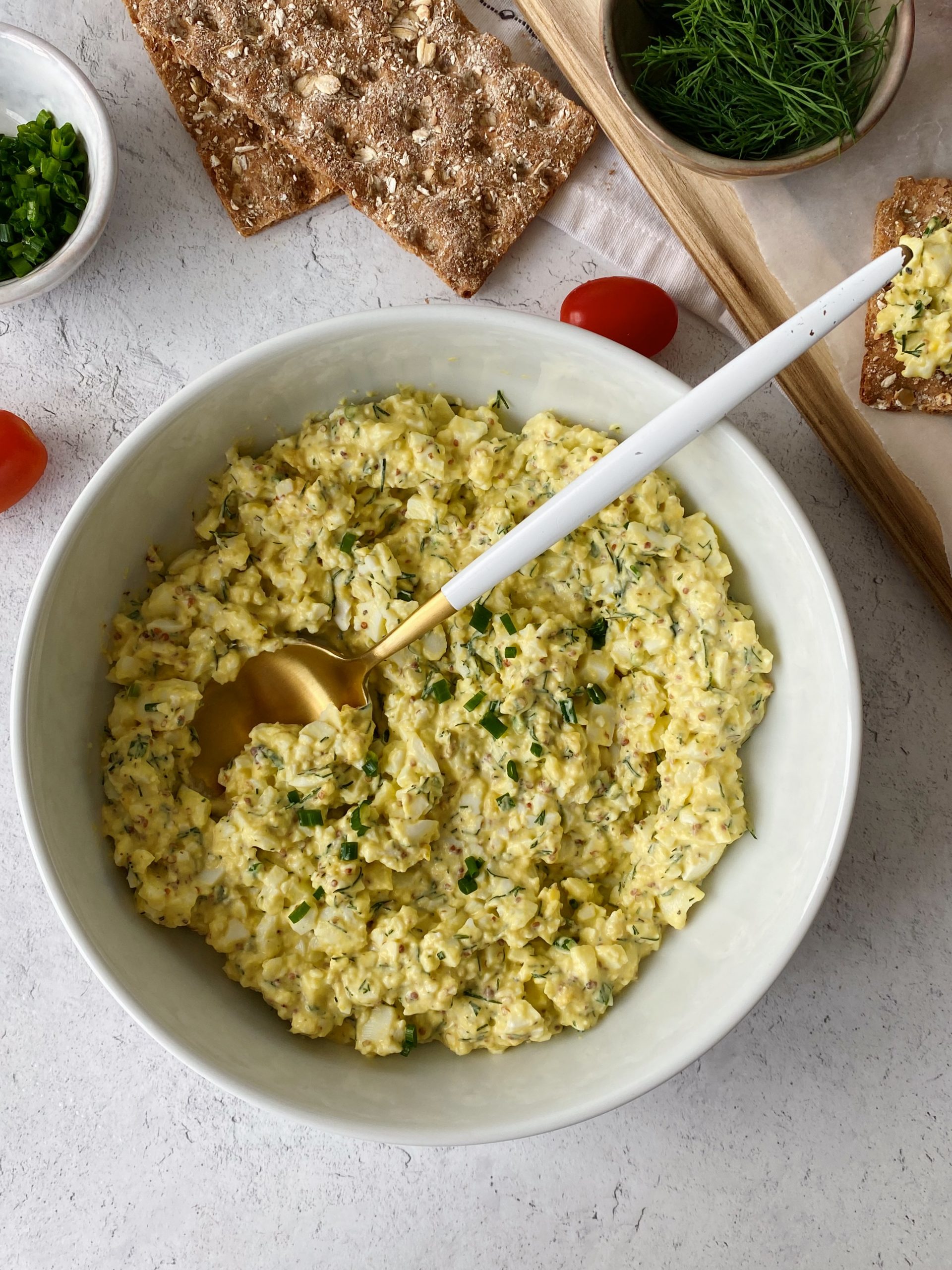 This flavorful and delicious egg salad is a summer staple! It’s simple to make, pairs perfectly with whole grain crackers, and comes together in 20 minutes.