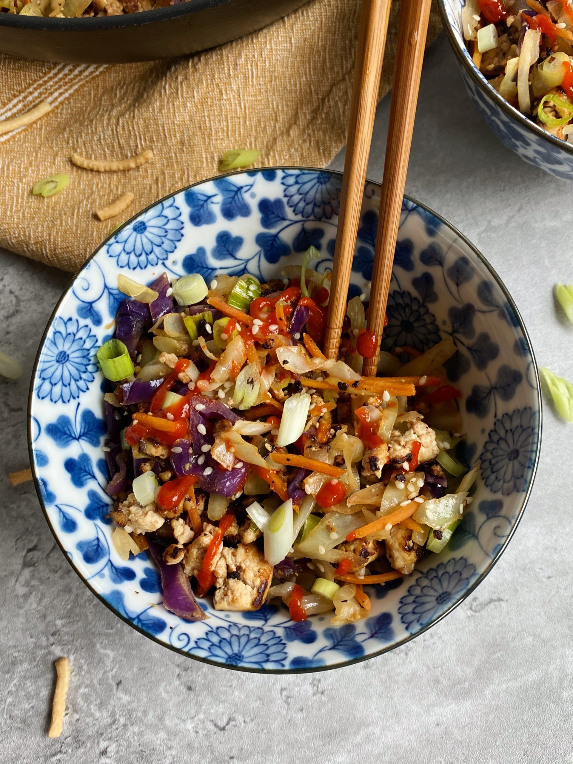 One-pan tofu egg roll in a bowl is a simple way to eat more plants throughout the week. It’s flavorful, easy to make, and can be served in so many ways!