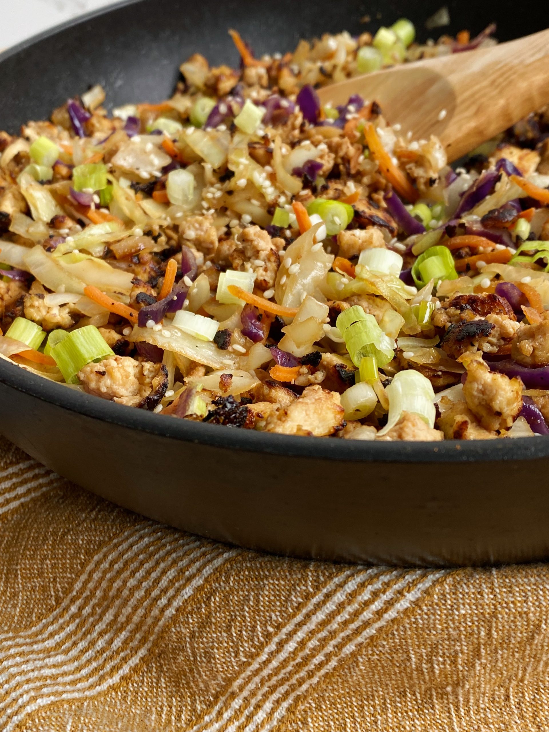 If you’ve never heard of egg roll in a bowl, its pretty much exactly how it sounds- all the goods of an egg roll filling served in a bowl, without the egg roll wrapper!