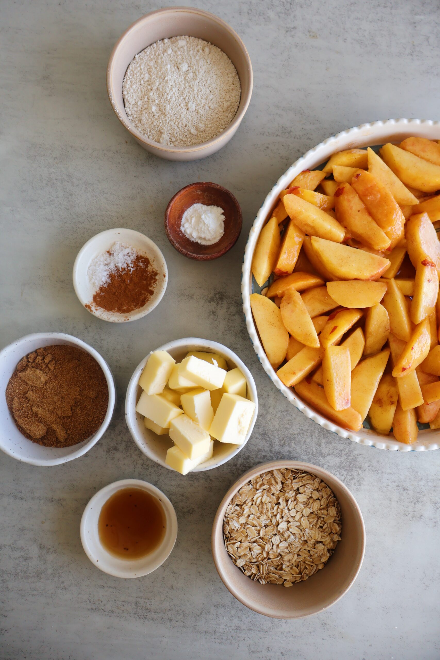 - 6-7 yellow peaches, sliced into wedges. You can leave the skin on or peel the peaches if preferred