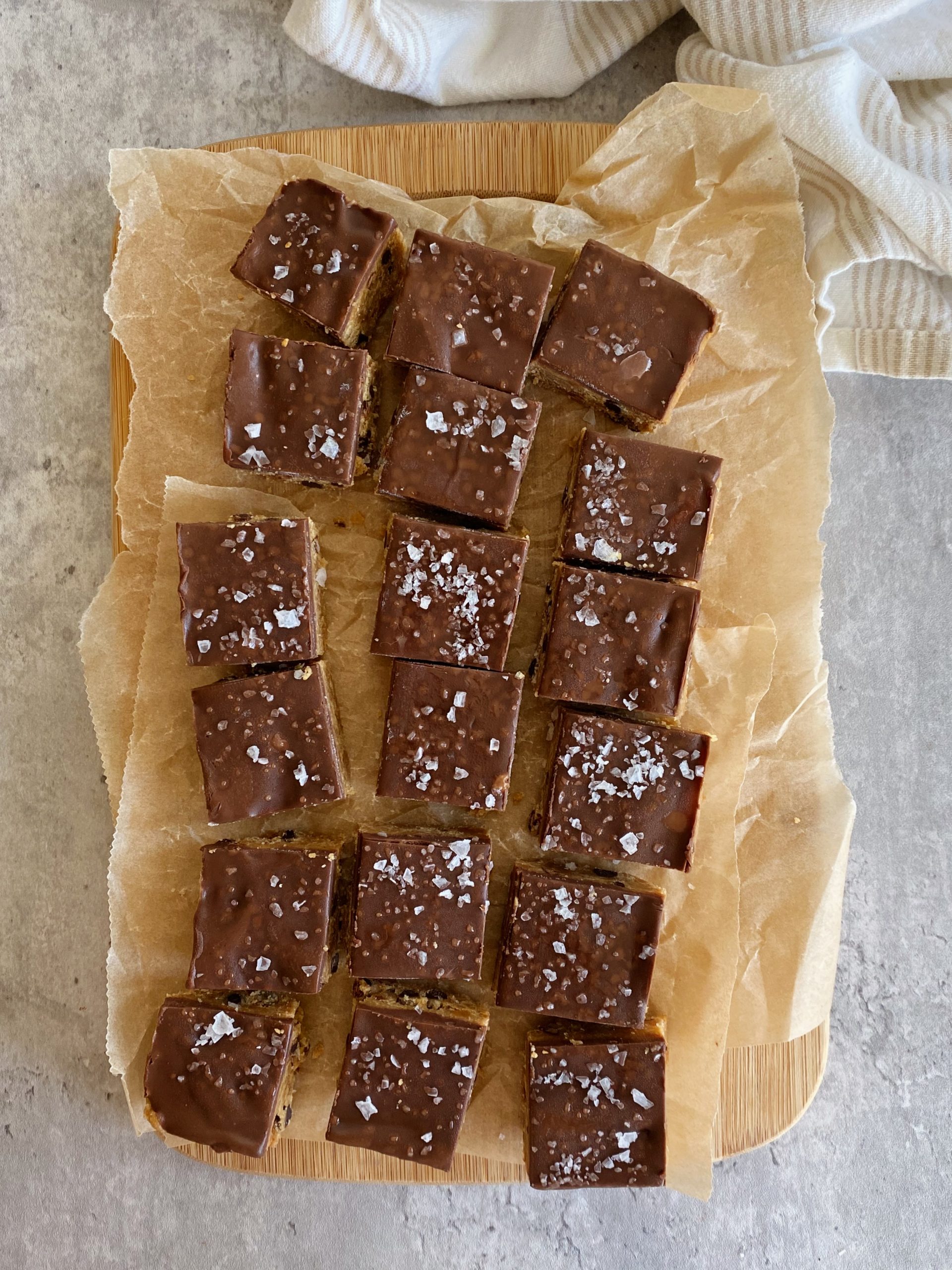 - Pour the chocolate over the bars, then sprinkle with sea salt.