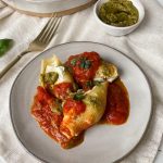 Tofu ricotta has been a favorite in our house for a while. I based this recipe off of my tofu lasagna rolls, but loved the idea of cooking the spinach prior for added flavor. The pesto on top is totally optional, but I love the flavor it provides!