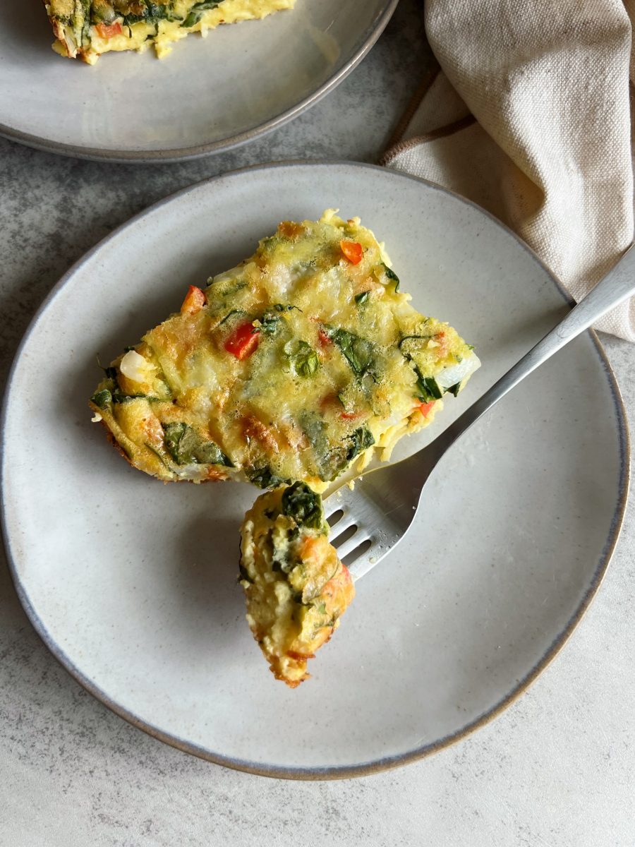 I’ve been obsessed with Starbucks sous vide egg bites for years and have been wanting to come up with my own version for a while. I tested this veggie egg bake a couple of times and think I finally perfected the texture.