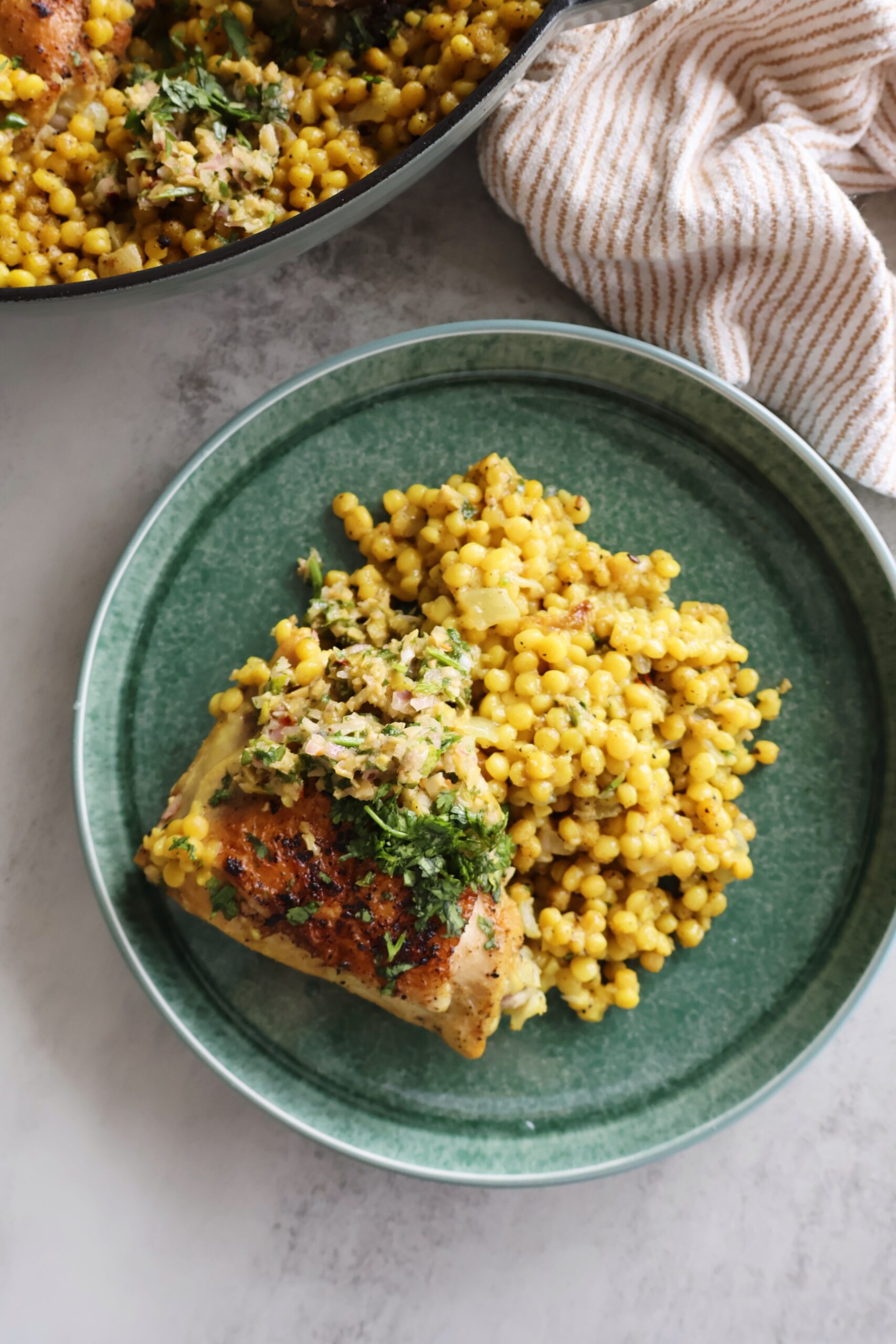 The chicken comes out juicy and flavorful with the fluffy pearled couscous, and the zesty olive salsa ties in all of the flavors together. This recipe is so delicious and easily customizable, it’s going to be on repeat for weeks to come.