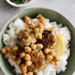 Zesty za’atar chicken meatballs with honey lemon chickpeas is a bold and flavor-packed recipe that’s perfect for weeknight dinner.