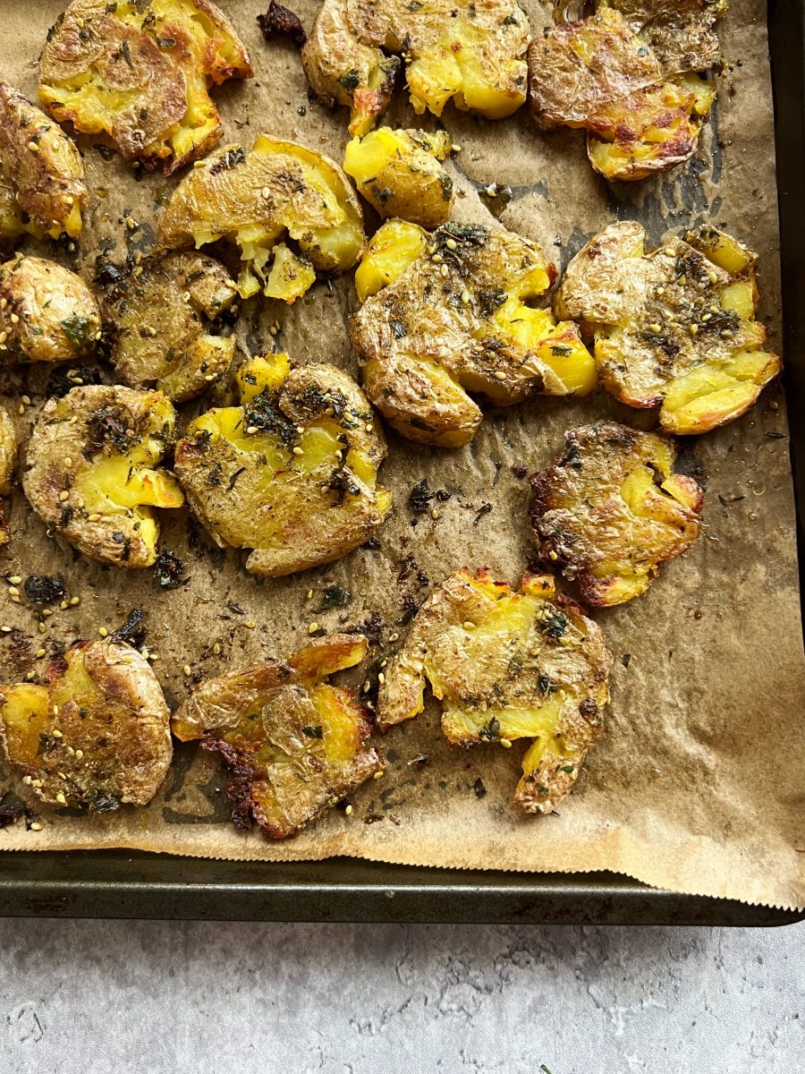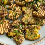 I love to add an extra layer of flavor with a sauce, like with my buffalo smashed potatoes. I topped these potatoes with my favorite chipotle tahini, which I’ve been adding to just about anything and everything (think salads, veggies, and even fish!)